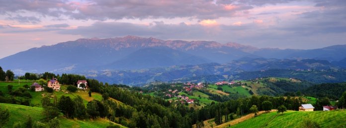 Deschiderea largă spre culoarul Rucăr–Bran oferă profunzime peisajului